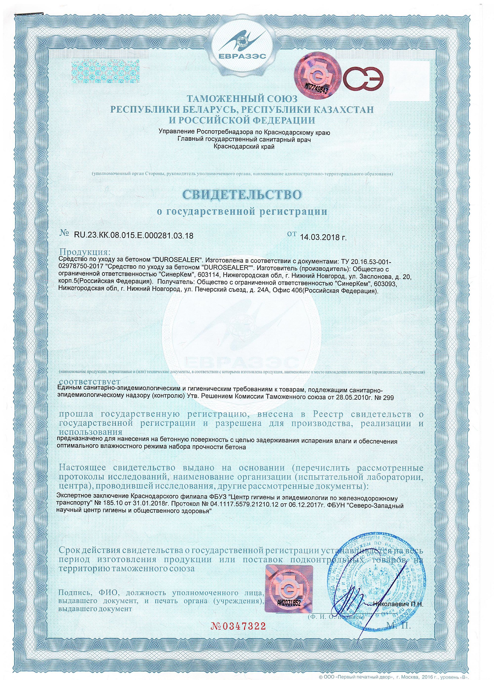 Средство по уходу за бетоном RU.23.KK.08.015.E.000281.03.18
